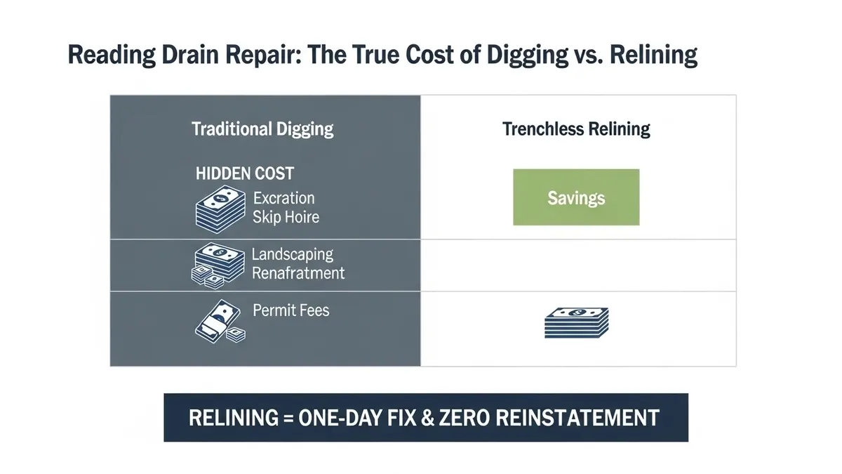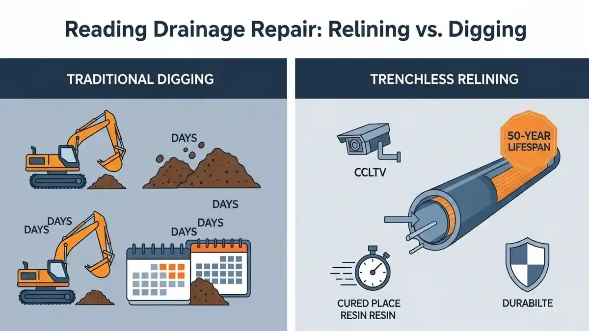 Avoid costly, messy excavations. Compare Hockley Drain Relining vs Digging to save your home, time, and money with our expert, minimally invasive, and durable no-dig repair solutions for local drains.